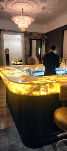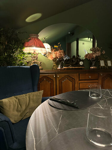 Интересный интерьер, спокойная приглушенная музыка, профессиональное обслуживание, вкусная кухня, качественный алкоголь. При этом всем очень приемлемые цены. Полноценный обед на двоих с алкоголем чек 4000