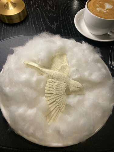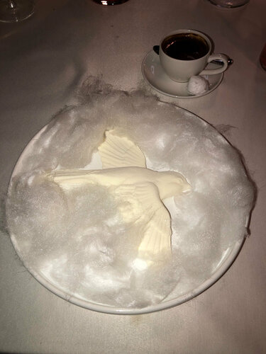 Работу официантки Татьяны (надеюсь, верно помню имя, дело было 2 мес назад - высокая брюнетка с длинными волосами) нужно просто снимать скрытой камерой и показывать стажёрам в качестве эталона. Постоянная улыбка, приветливость, готовность рассказать про каждое блюдо, сразу принесла подставку под сумку, не дожидаясь моих просьб, к феттучини подала не только вилку с ножом, но и ложку (обычно ложку к пасте приходится выпрашивать), незаметно забирала грязные тарелки, убавила кондей, когда я попросила, но потом, видя, что мы сидим прямо напротив него и мне всё-таки дует по ногам, сама его выключила, без моей повторной просьбы… А ещё при приёме заказа представилась в самом конце, после того, как повторила наш заказ. Когда представляются сразу после «здравствуйте», и потом идёт общение про заказ, имя обычно тут же вылетает из головы, а так мы его запомнили =).